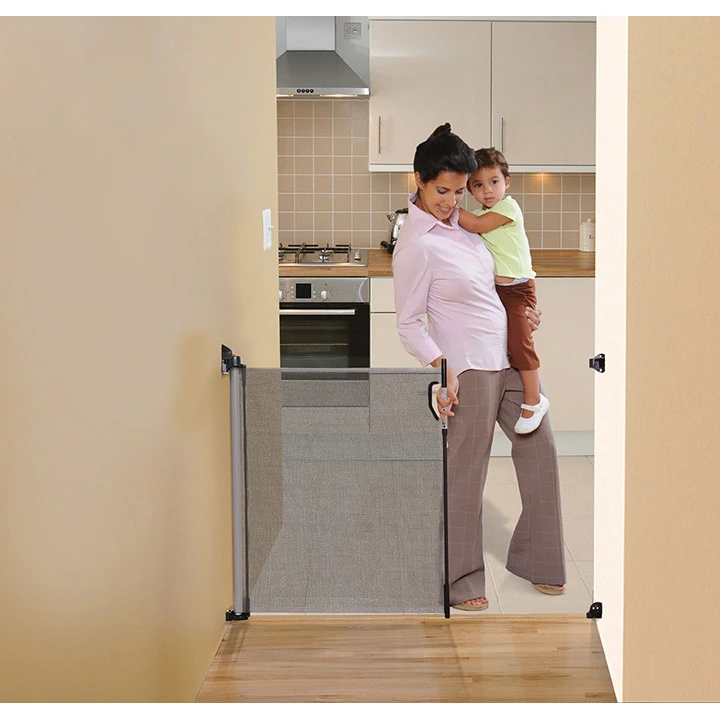 La barrière de sécurité rétractable Dreambaby fournit une barrière pour différentes largeurs et se rétracte intelligemment lorsqu’elle n’est pas utilisée. Avec une libération à clipser, vous pouvez déplacer la barrière de sécurité d’un endroit à un autre en prenant soin de deux supports de montage inclus. La barrière de sécurité peut être utilisé à l’intérieur et à l’extérieur, mais doit être ramené à l’intérieur lors de conditions météorologiques défavorables. Sa structure solide, robuste et durable et son absence de risque de trébuchement le rendent idéal pour les escaliers. Convient aux ouvertures jusqu’à 140 cm.